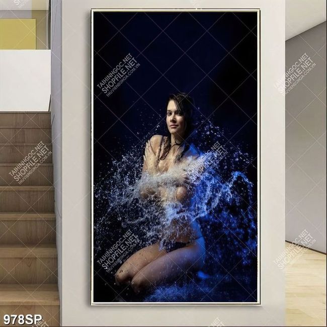 Tranh nghệ thuật cô gái ngồi tạo dáng với nước treo spa