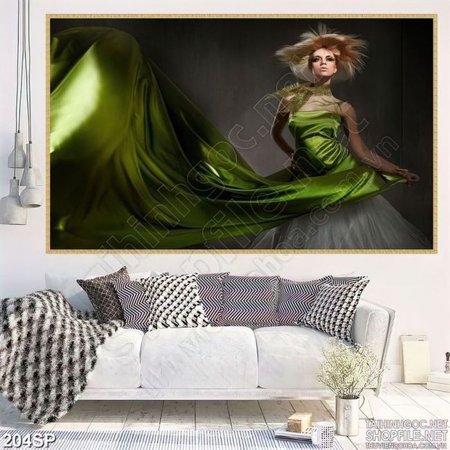 Tranh nghệ thuật cô gái váy xanh