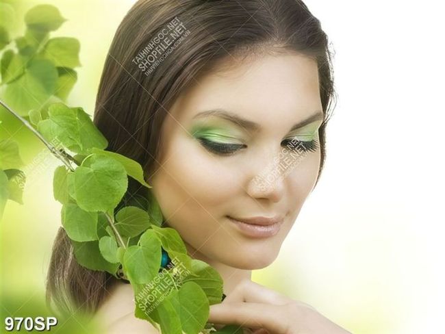 Tranh người mẫu makeup đôi mắt xanh treo spa