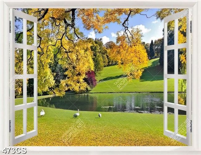 Tranh phong cảnh mùa thu bên ô cửa sổ