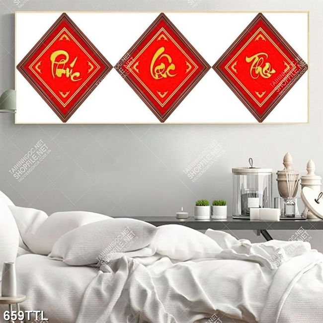 Tranh phúc lộc thọ dát vàng trang trí phòng khách