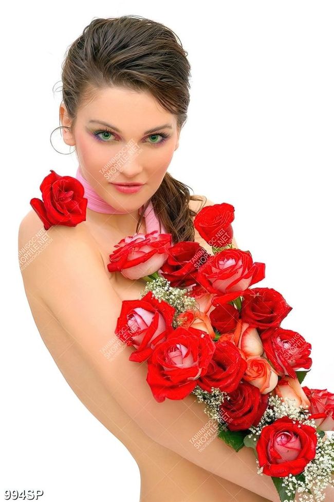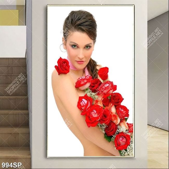 Tranh spa cô gái xinh đẹp bán nude với hoa hồng