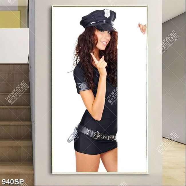 Tranh spa cô gái xinh đẹp bên bức tường trắng