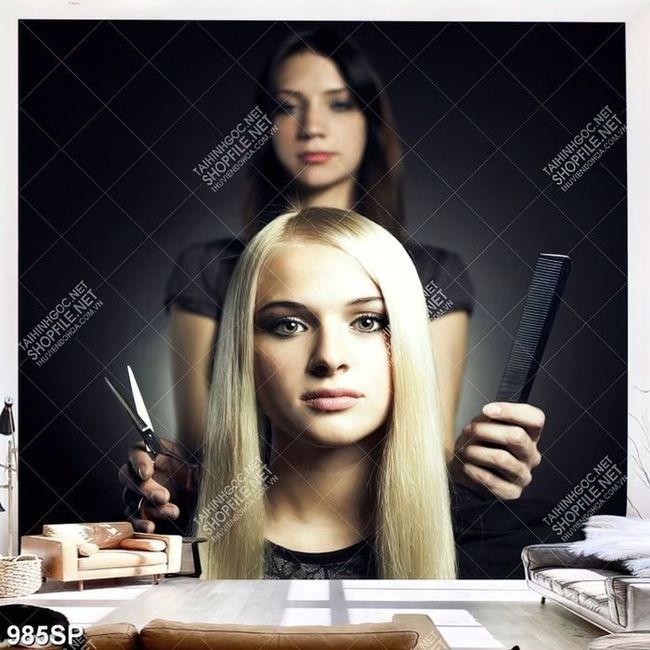 Tranh spa cô gái xinh đẹp với mái tóc vàng óng ả