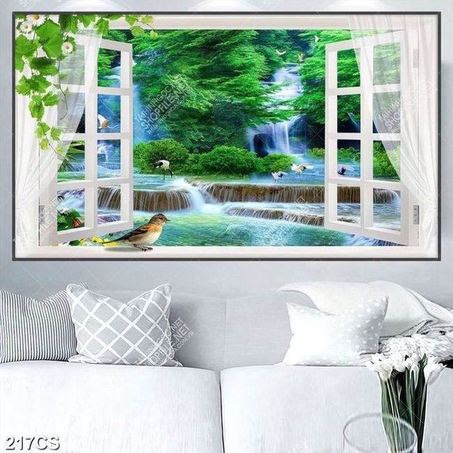 Tranh thác nước bên khung cửa sổ file gốc