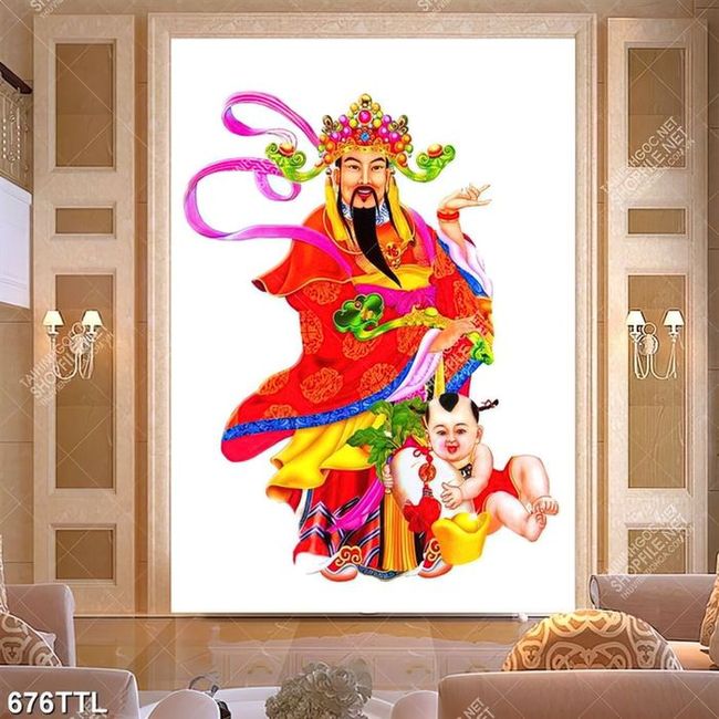 Tranh thần tài và tiểu linh đồng chất lượng cao