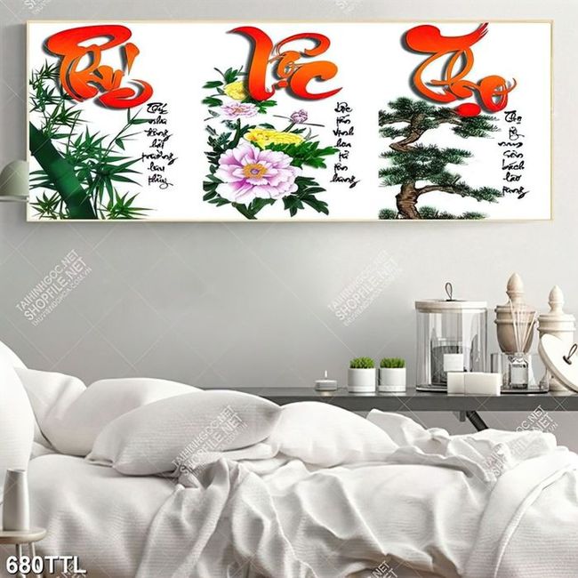 Tranh thư pháp phúc lộc thọ trang trí nội thất