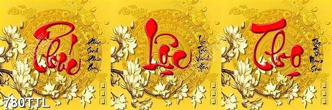Tranh thư pháp phúc lộc thọ và hoa mộc lan trắng đẹp trang trí nội thất