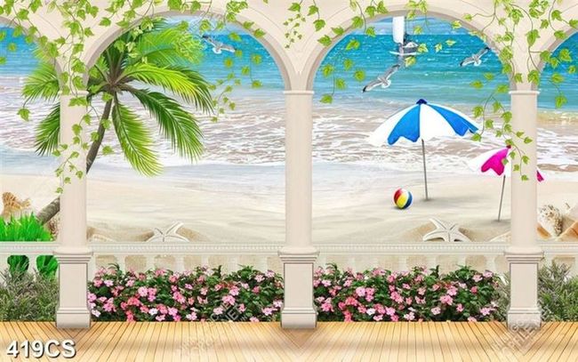 Tranh trang trí tường ban công bên cãi cát vàng in kính