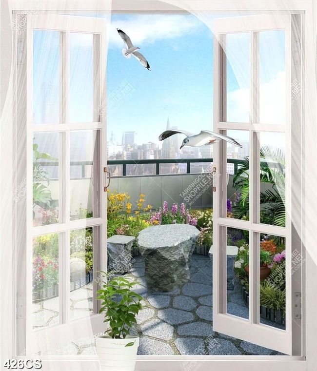 Tranh trang trí tường góc nhỏ ban công hướng ra thành phố lớn